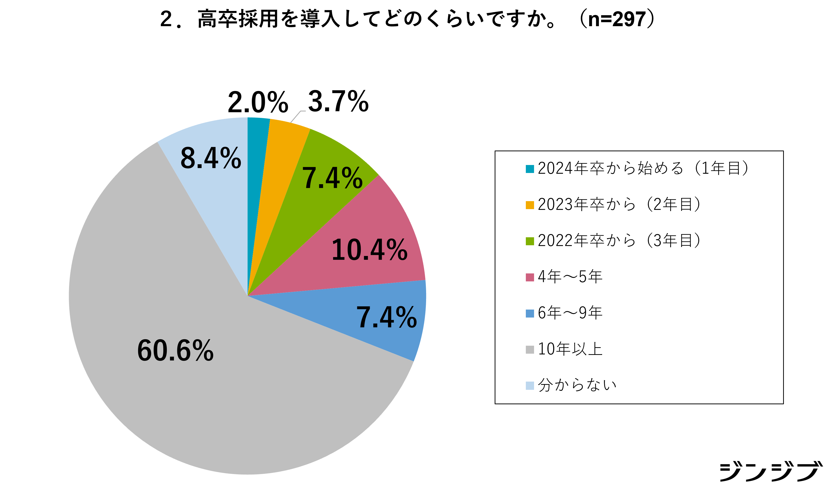 2.高卒採用を導入してどのくらいですか。(n=297)