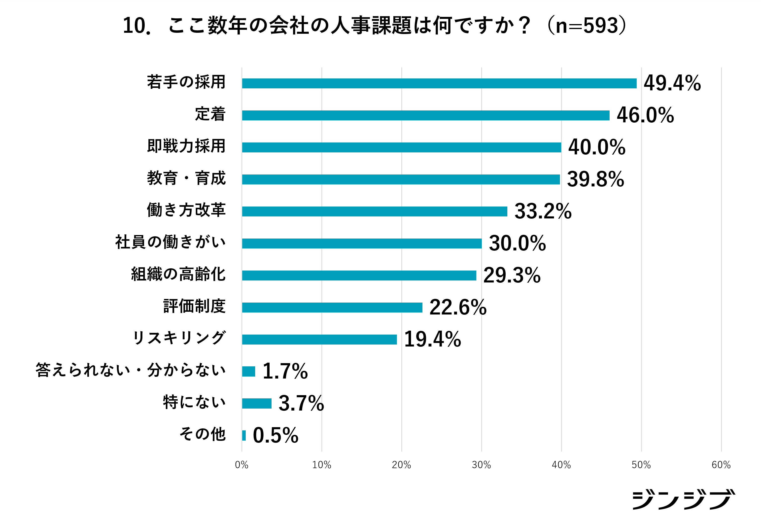 10.ここ数年の会社の人事課題は何ですか?(n=593)