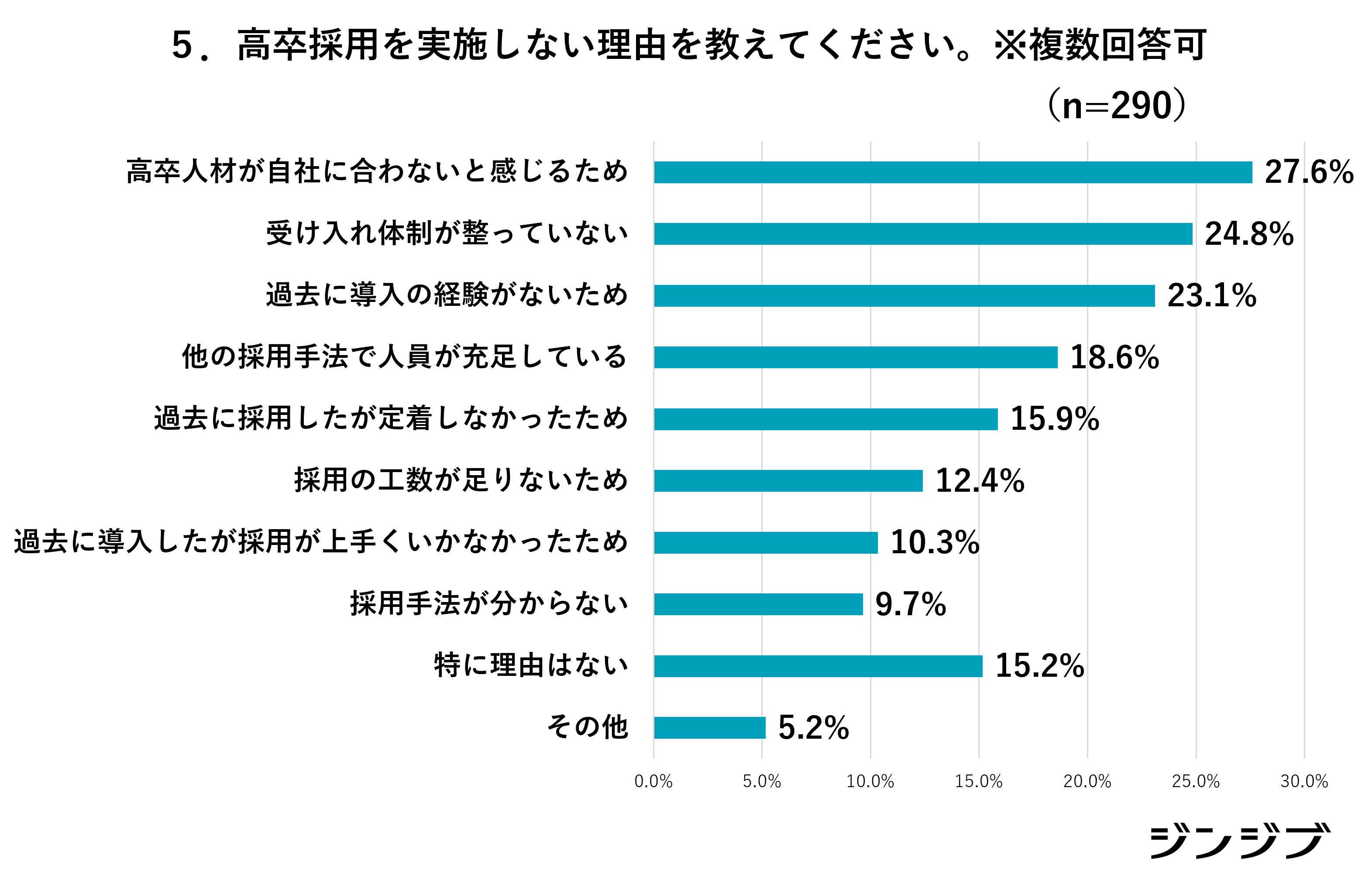 5.高卒採用を実施しない理由を教えてください。※複数回答可(n=290)