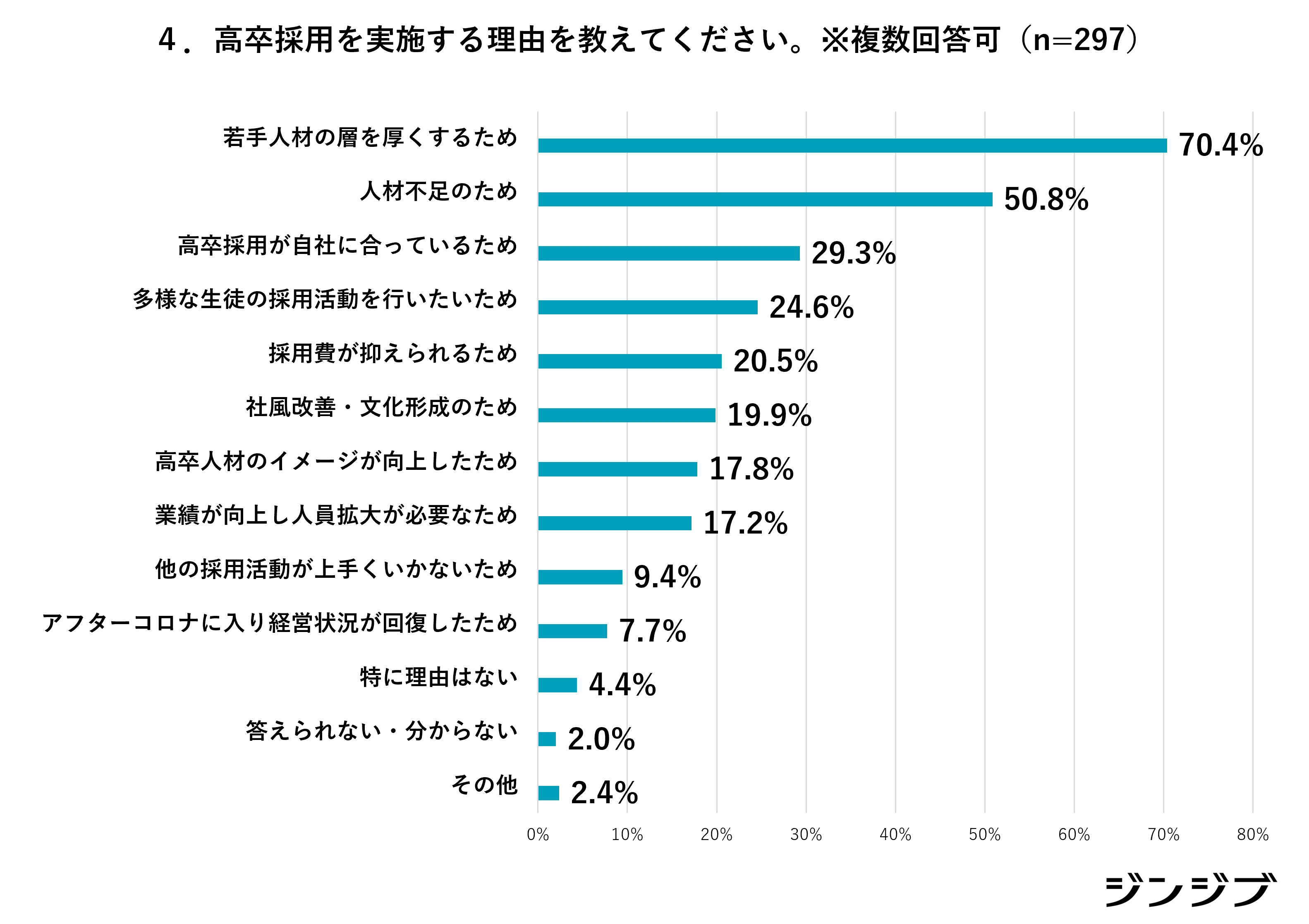 4.高卒採用を実施する理由を教えてください。※複数回答可(n=297)