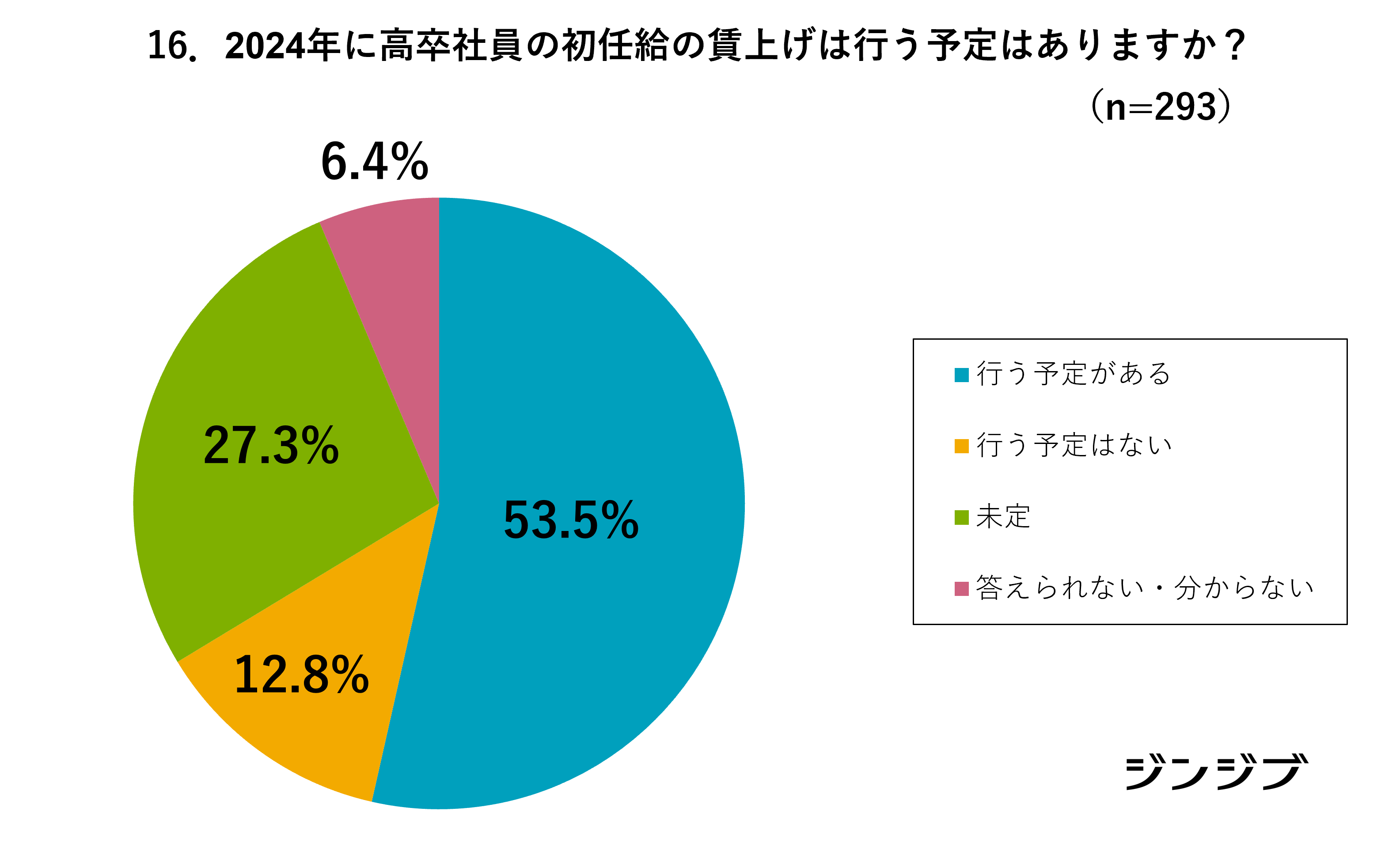 16.2024年に高卒社員の初任給の賃上げは行う予定はありますか? (n=293)