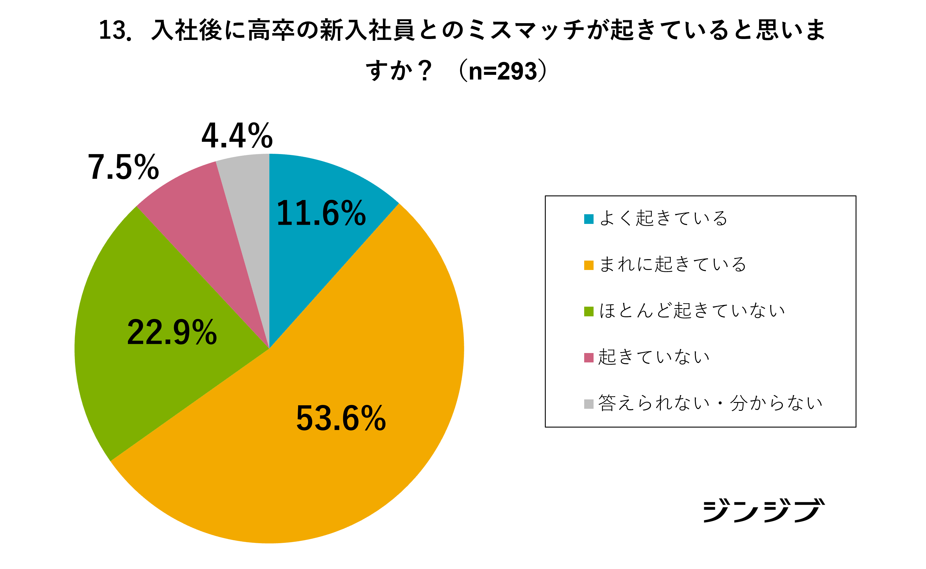 13.入社後に高卒の新入社員とのミスマッチが起きていると思いますか? (n=293)
