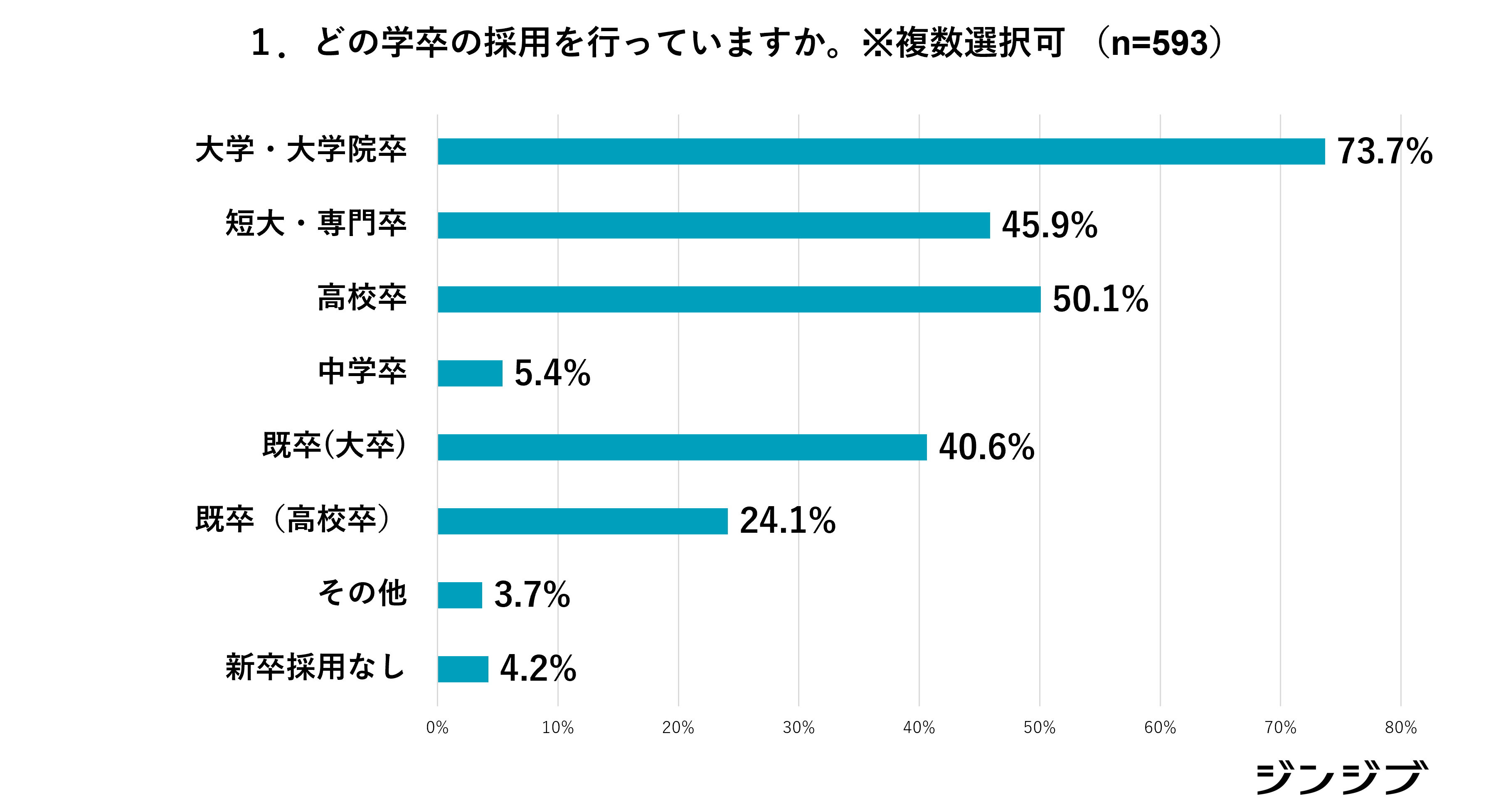 1.どの学卒の採用を行っていますか。※複数選択可 (n=593)