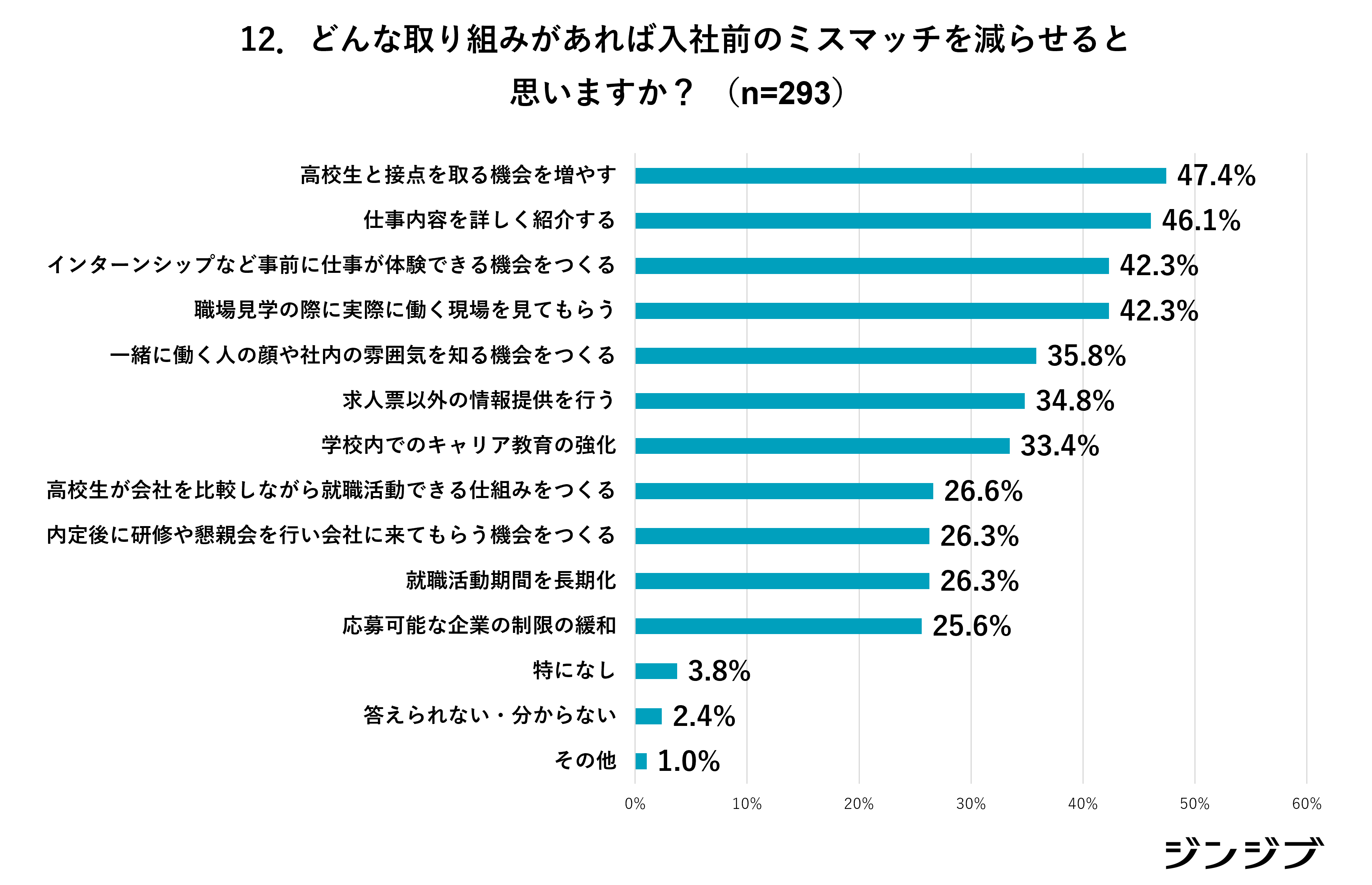 12.どんな取り組みがあれば入社前のミスマッチを減らせると思いますか? (n=293)