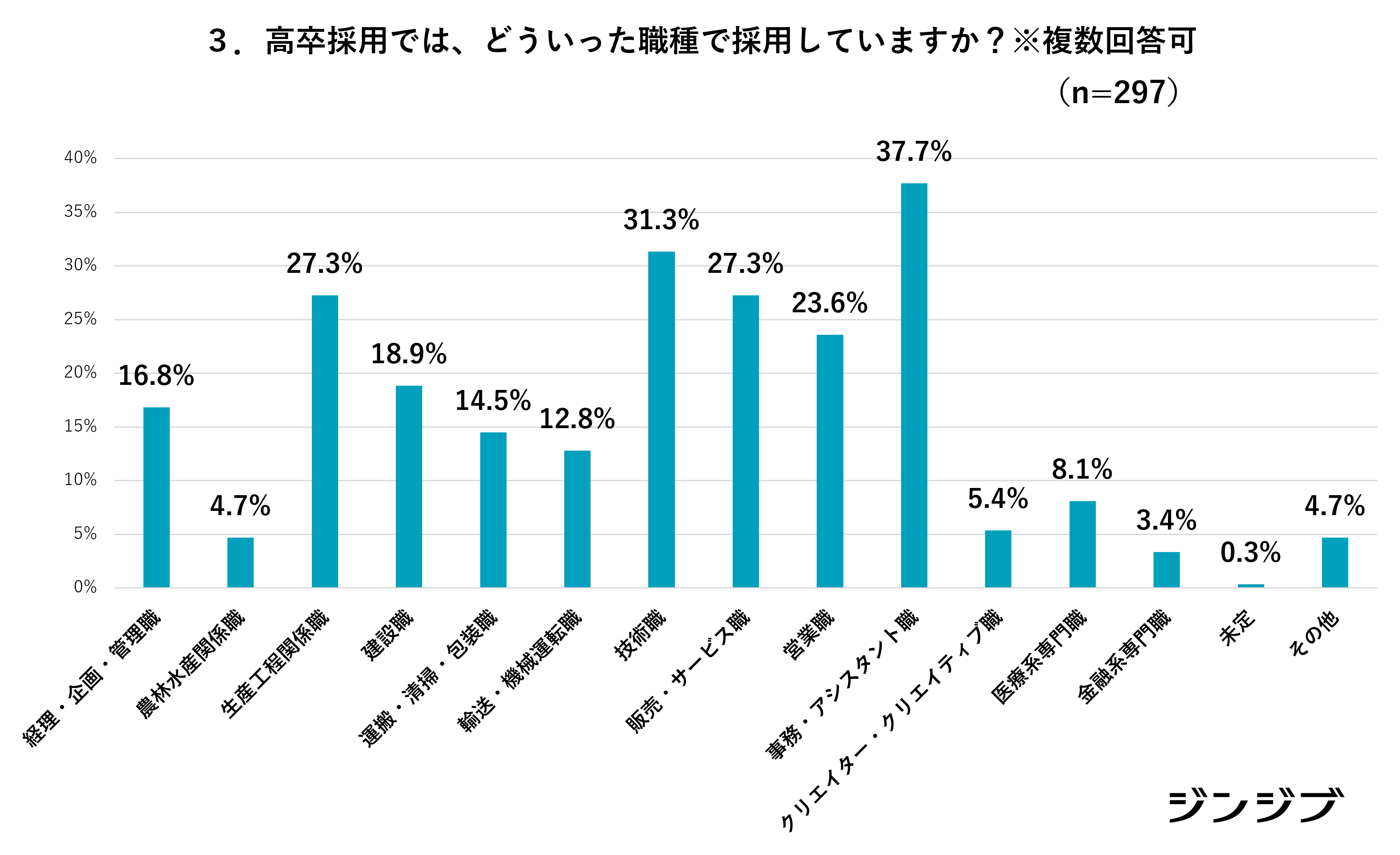 3.高卒採用での募集職種 ※複数回答可 (n=297)