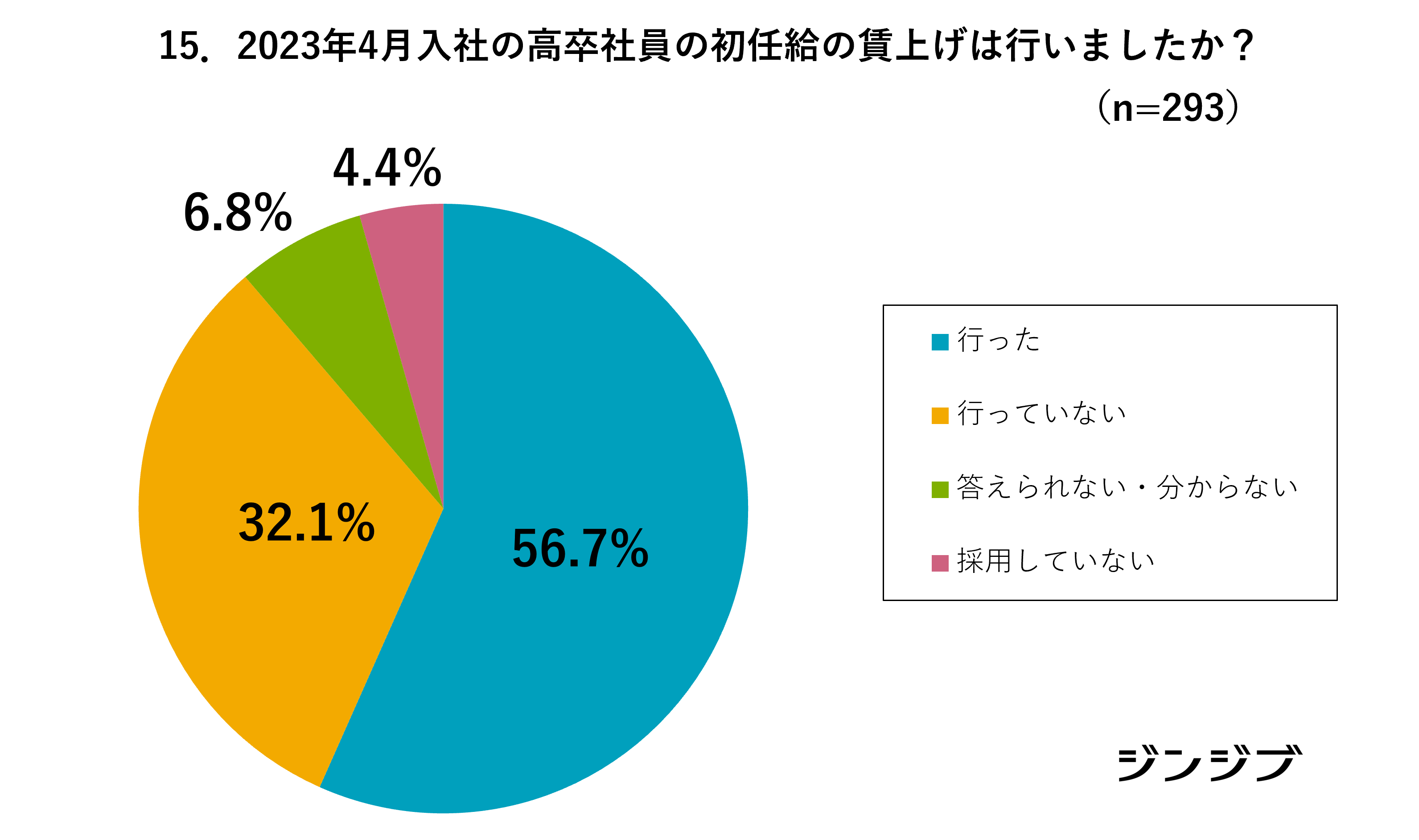 15.2023年4月入社の高卒社員の初任給の賃上げは行いましたか? (n=293)