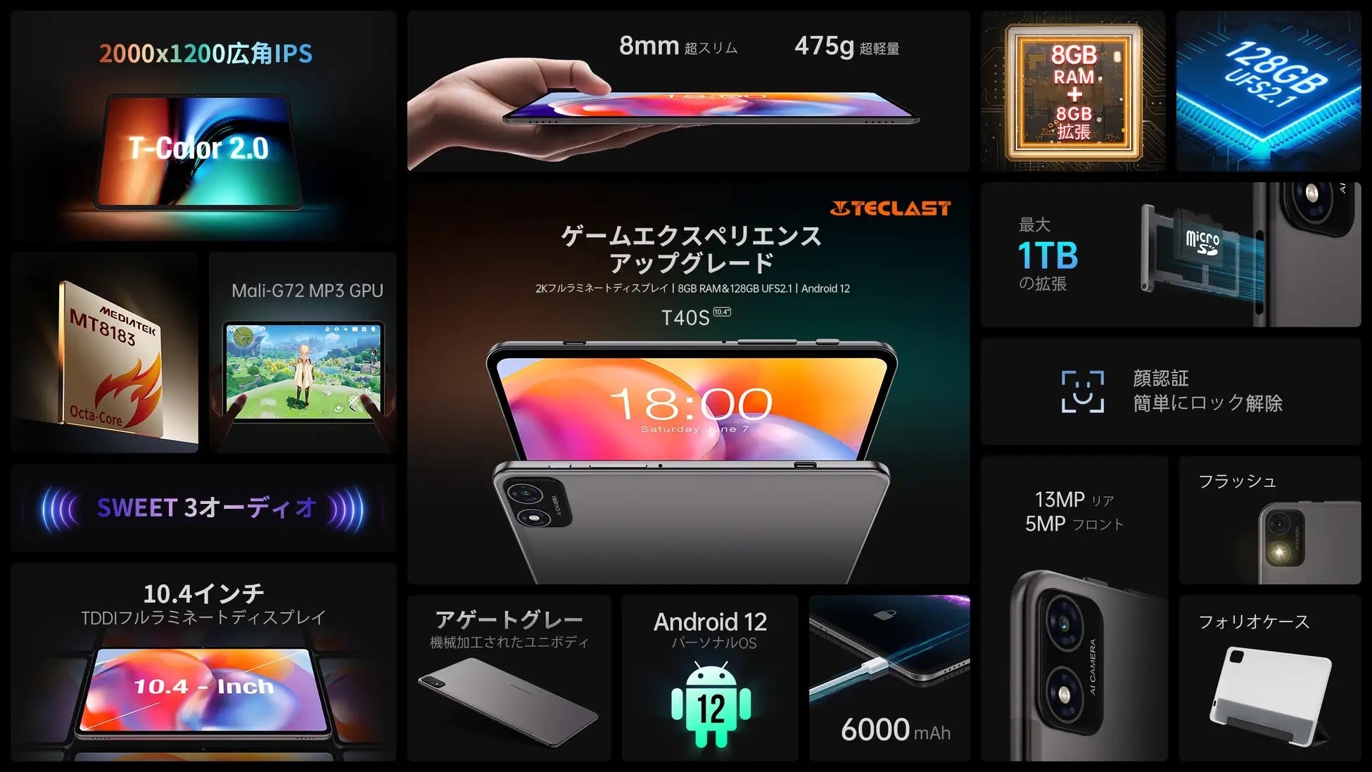 Teclast Tシリーズ新製品「T40S」24時間限定のタイムセールは今実施します。10.4インチの2Kディスプレイ、13MP+5MP新設計のデュアルカメラ、及び8GB+8GB拡張+128GB超大容量を備えた「T40S」をご注目ください。