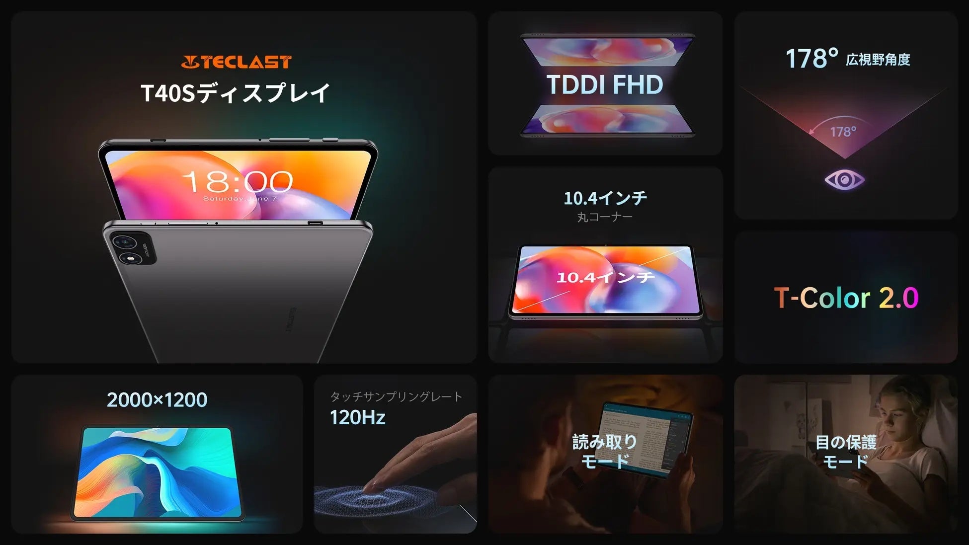 Teclast「T40S」タブレットは10.4インチ、2Kフルラミネートディスプレイを使用しています。2000×1200ピクセルの超FHD解像度とT-Color2.0カラーオプティマイゼーション技術により、優れたオーディオビジュアル性能、スムーズな視聴体験を提供します。