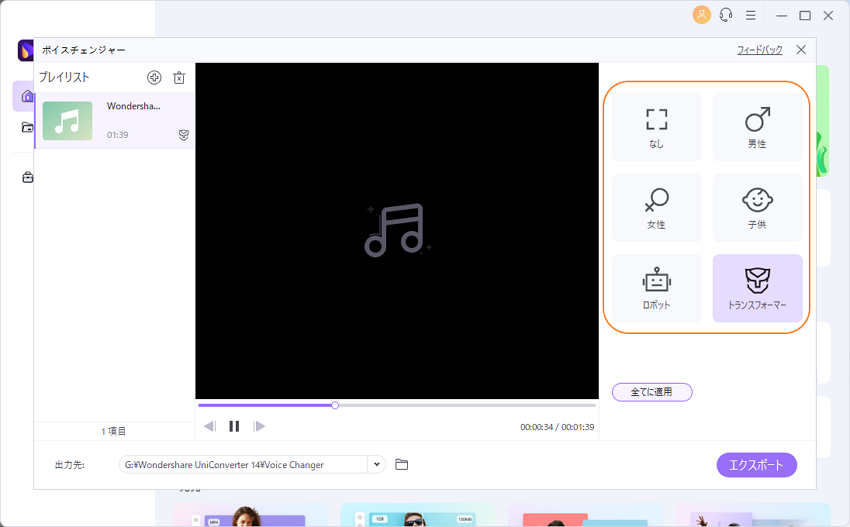 ユニコンバーターでは6種類の変換タイプから気になるエフェクトを選ぶだけで、すぐに声や音を変換できます