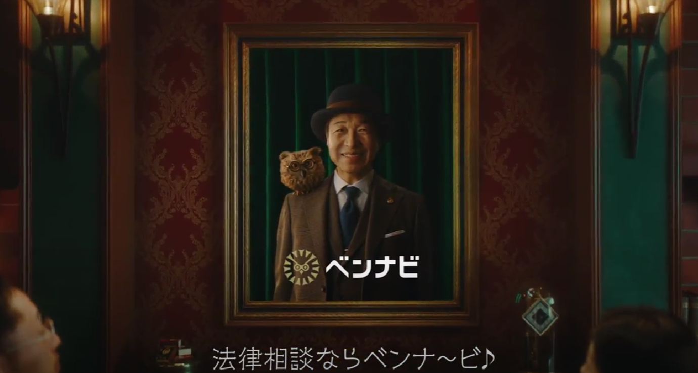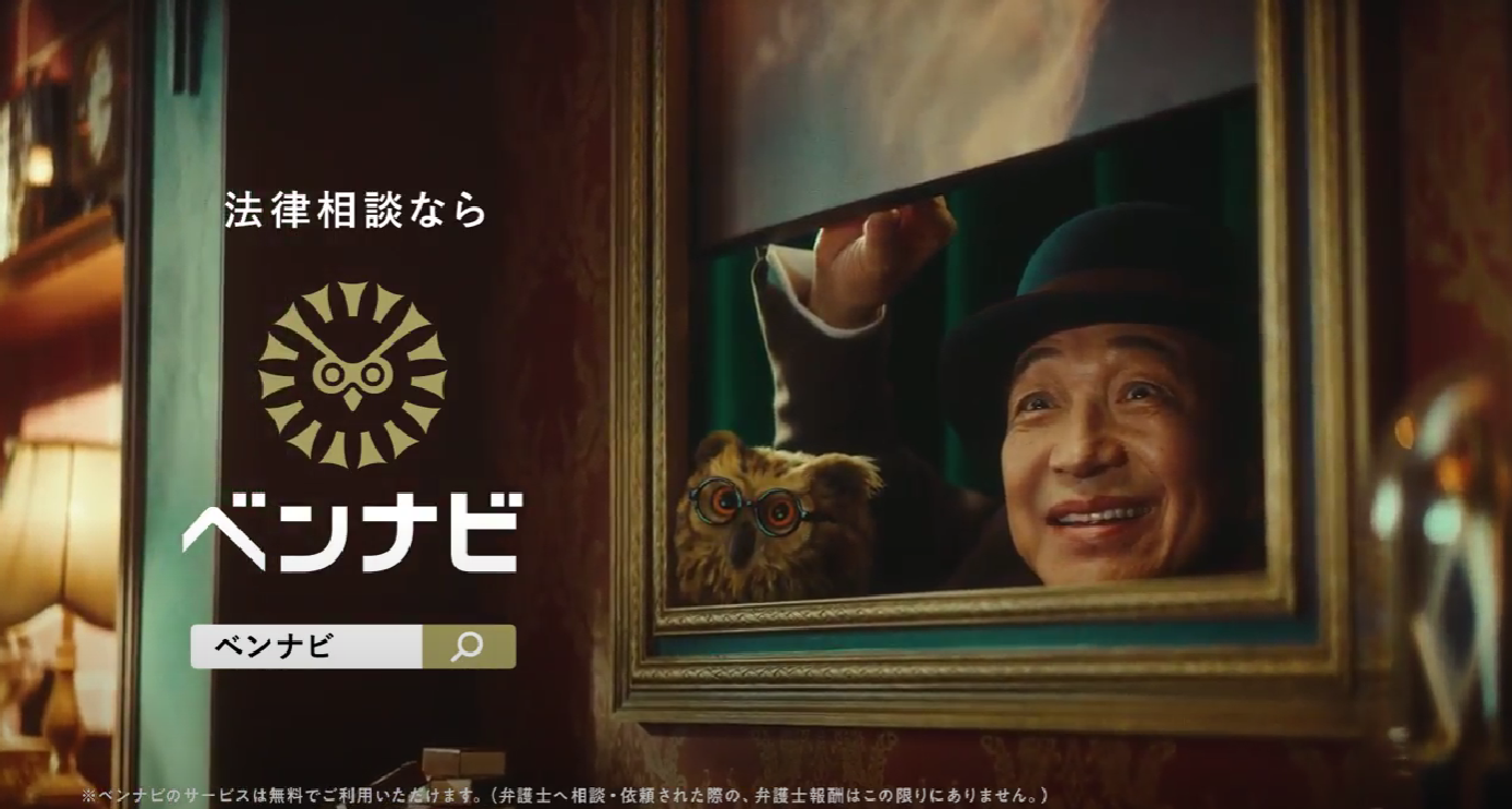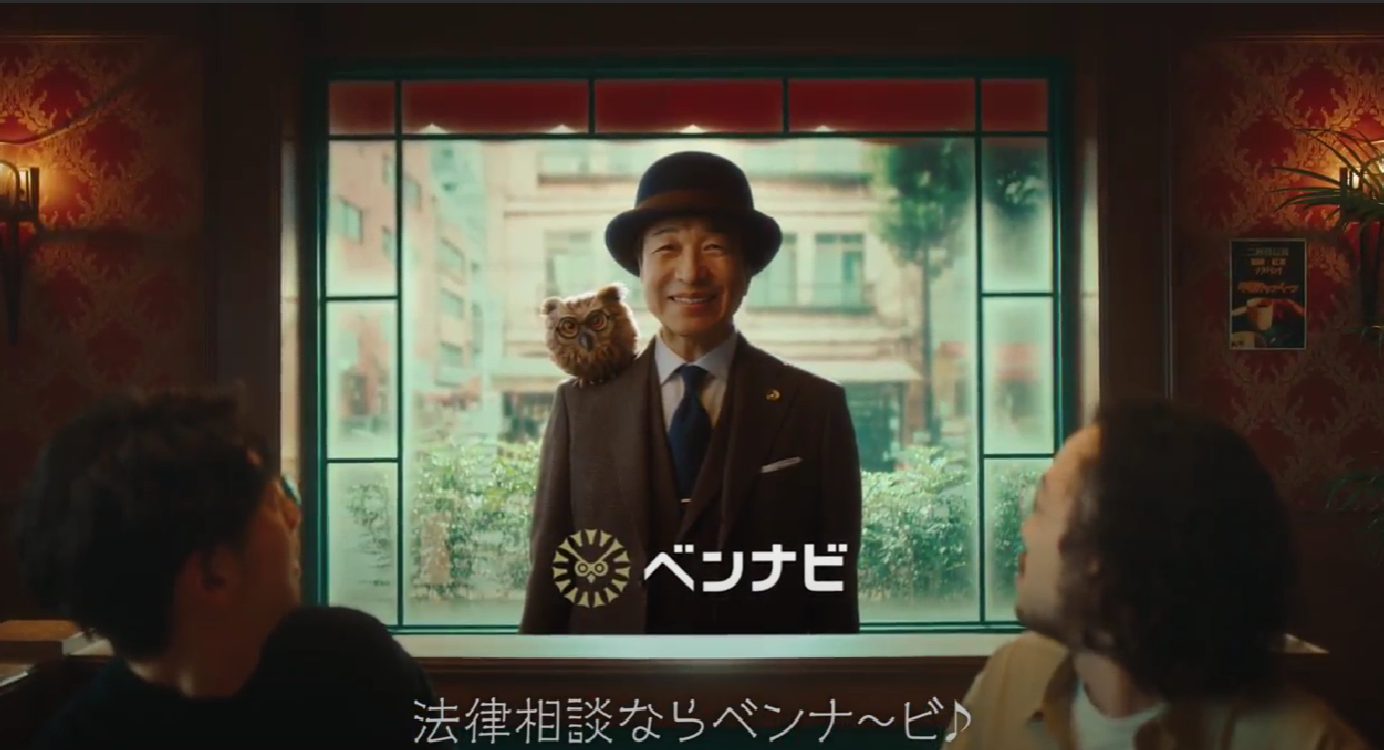 本日から関西地方で放映開始する新CM「ベンナビの歌」篇では、労働問題や離婚問題などの法律トラブルに巻き込まれて困っている人の前に、「法律相談ならベンナ~ビ♪」と明るく歌いながら小日向さんが登場します。肩に「ベンナビ」のロゴをモチーフにした可愛らしいフクロウの人形を乗せて、小窓から微笑んだ小日向さんが登場する場面は、法律トラブルで悩んでいる人に安心感を与えます。