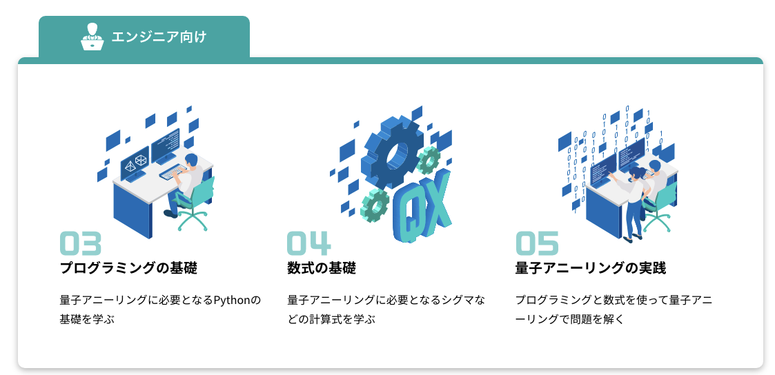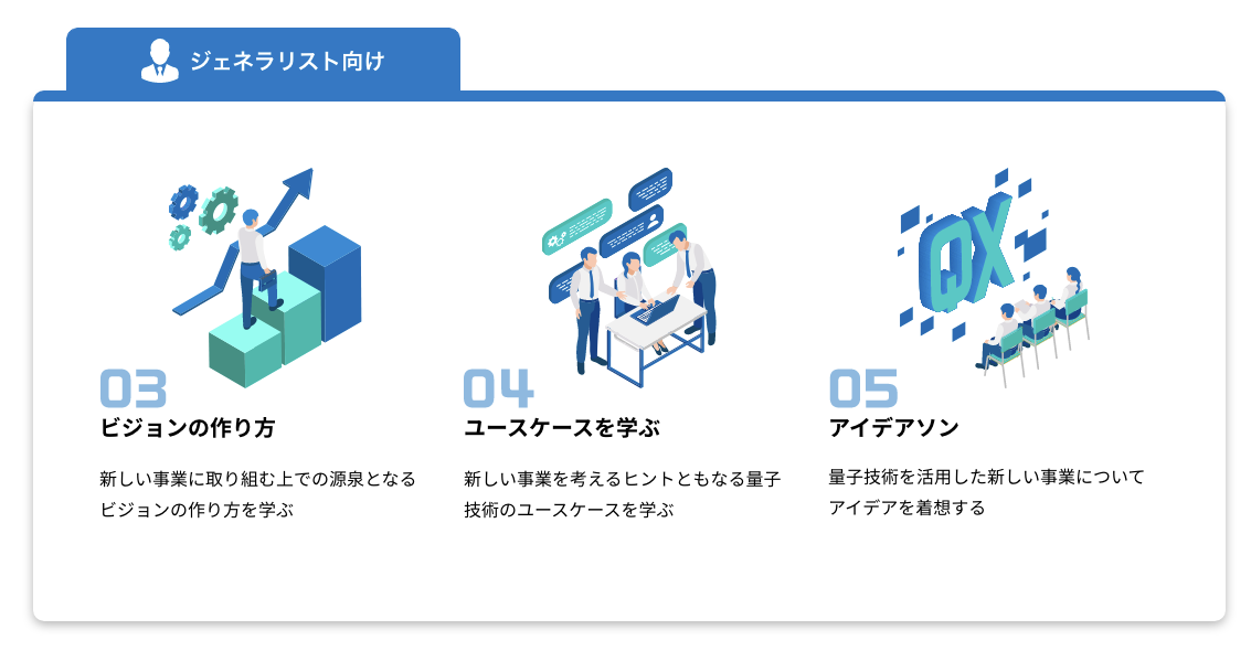 ※なお、Q-Questは、文部科学省の「令和4年度 光・量子飛躍フラグシップ・プログラム(Q-LEAP)人材育成プログラム」において採択された弊社の研究開発課題「Quantum Transformation イノベーター人材育成の事業化の研究」により開発されたプログラムです。