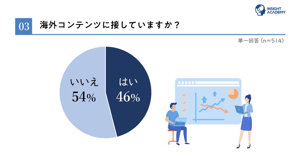 本調査結果から、約46%の若手社員が海外コンテンツに接していることが明らかになりました。
