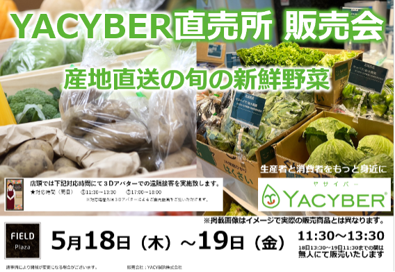 この度、YACYBER株式会社(本社:大阪市中央区、代表取締役:唐澤太郎)及び⽇本電気株式会社(所在地:東京都港区、代表取締役 執⾏役員社⻑ 兼 CEO:森⽥隆之)と共に、アバター接客システム「xR Cast HoloPhone」を用いたリモート接客による農産物の無人直売所営に関する実証実験を開始いたしました。