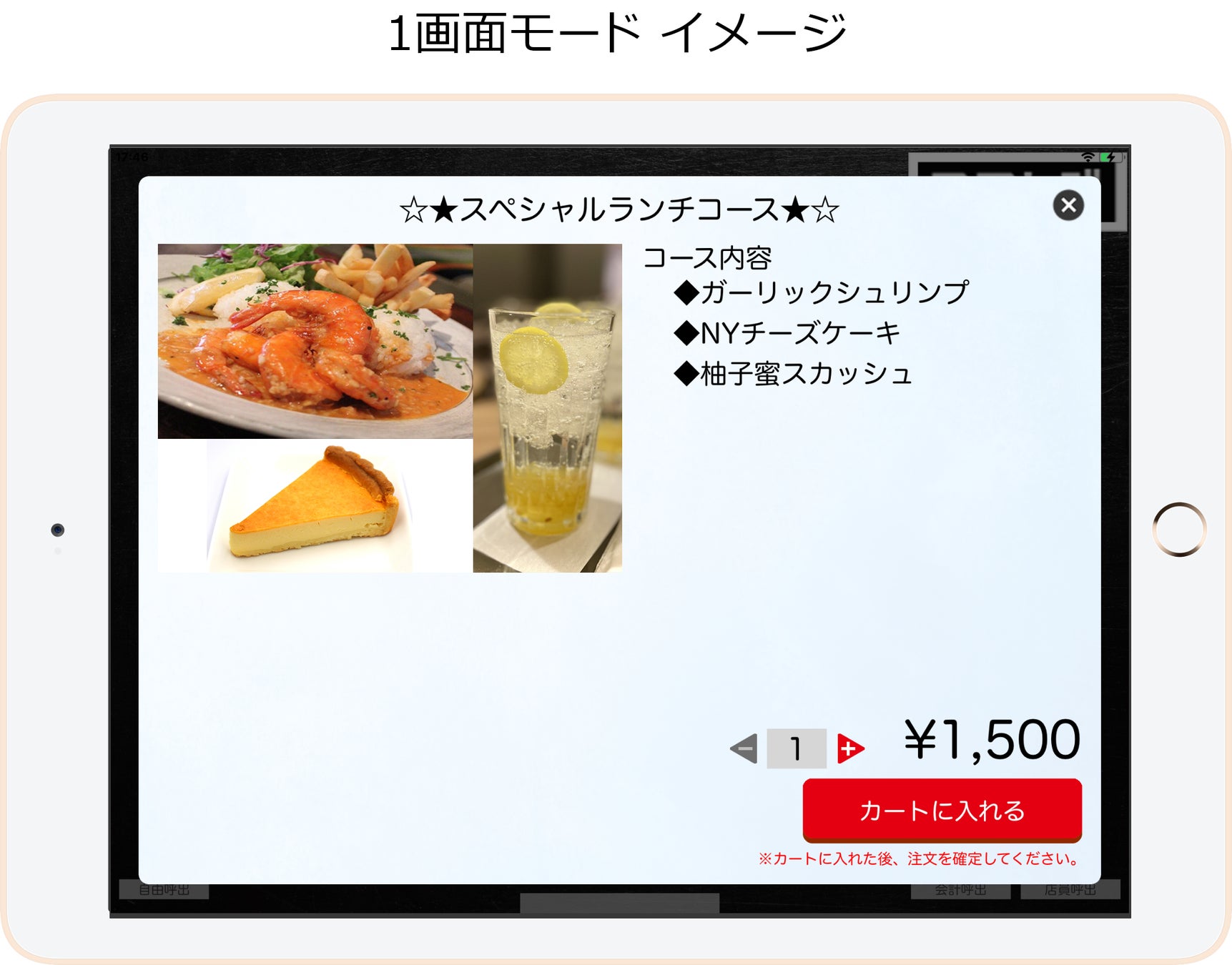 選択肢が決まっているコースに関しては、1画面に表示させる「1画面モード」の選択も可能です。