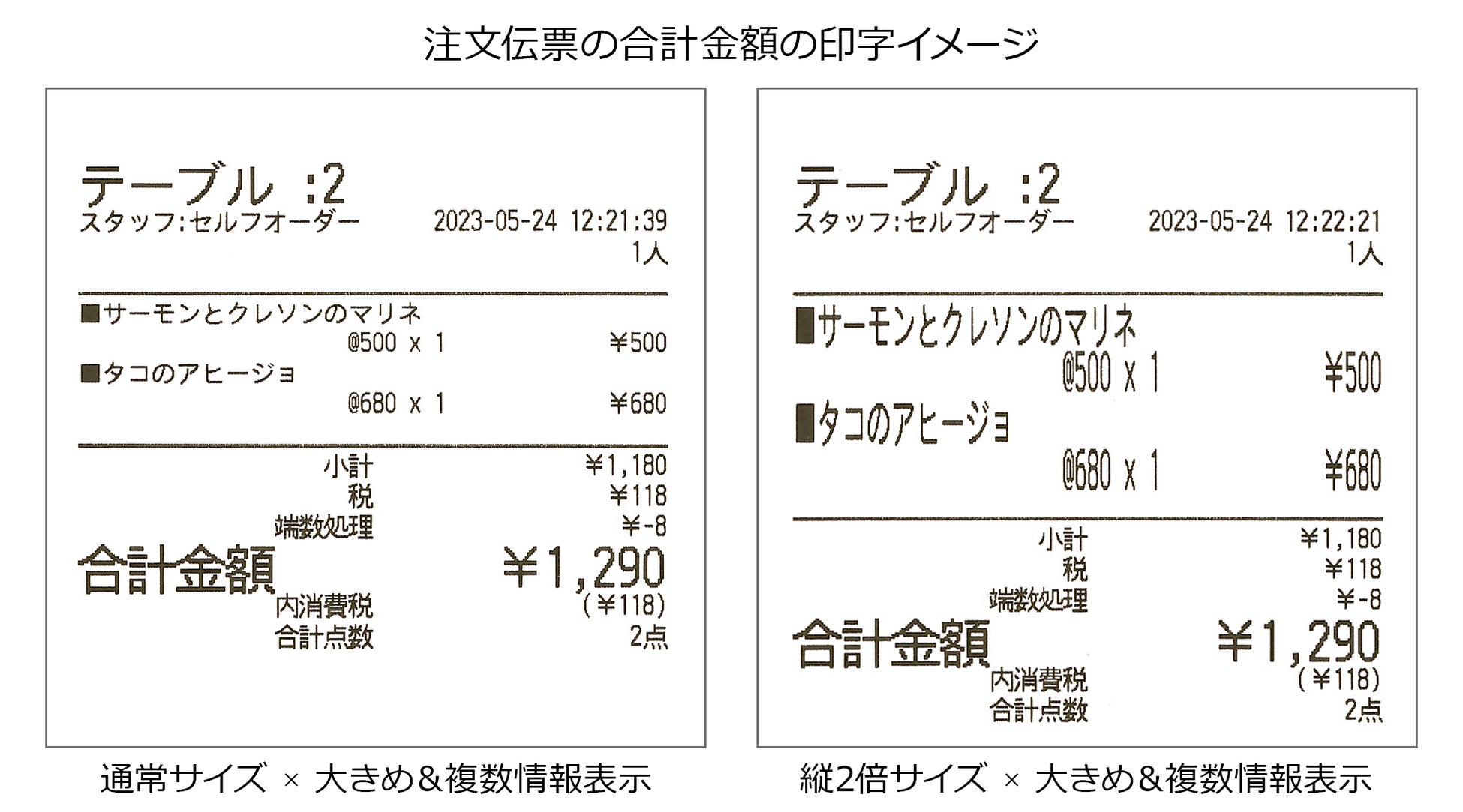 ・注文伝票の合計印字形式を「シンプル表示(従来)」と「大きめ&複数情報表示」