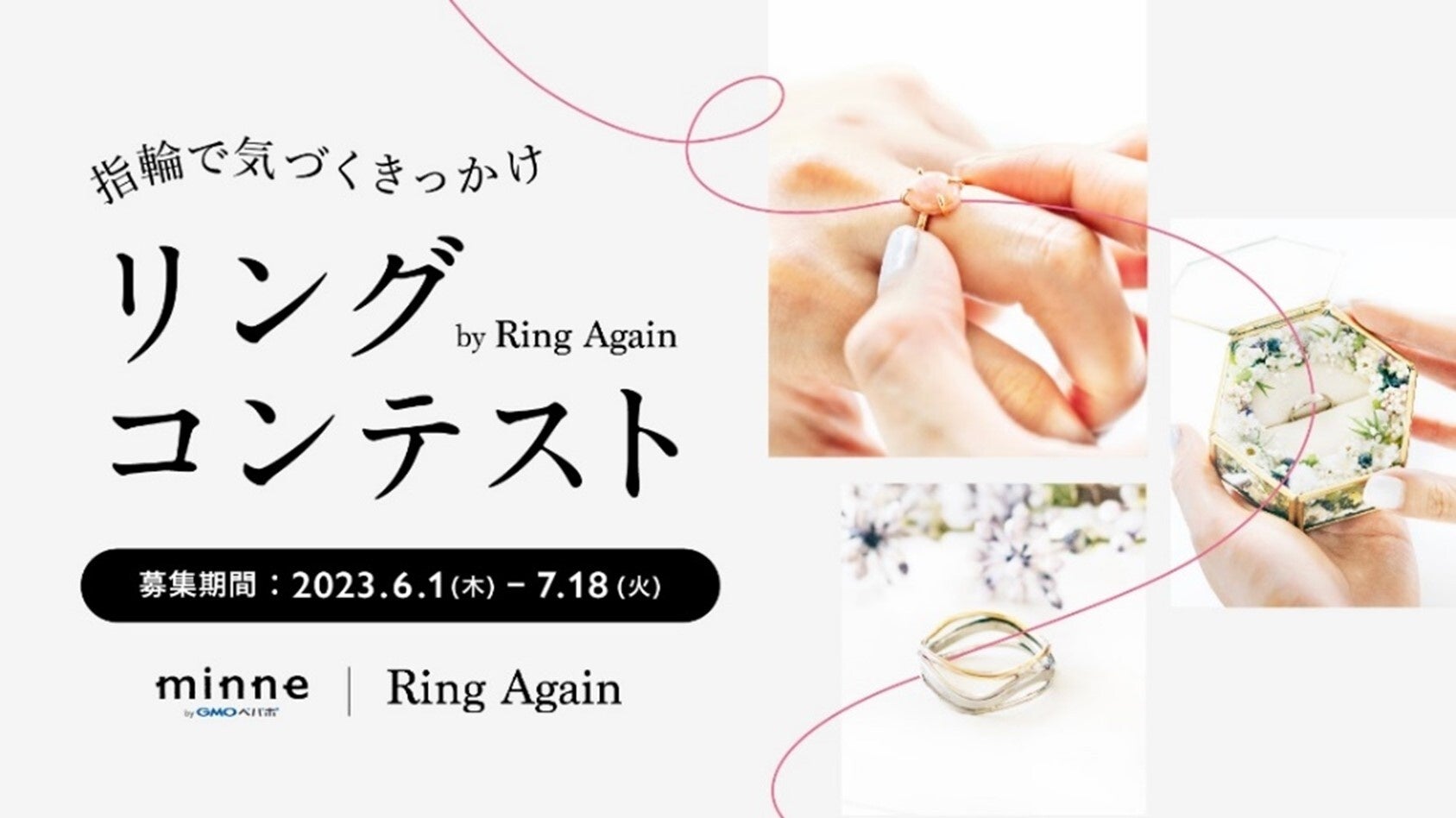 「Ring Again」をイメージした指輪と指輪を楽しむためのアイテムの作品を「minne byGMOペパボ」上とTwitter上で募集し、応募いただいた作品の中からグランプリを含む3つの賞(26作品)を決定いたします。