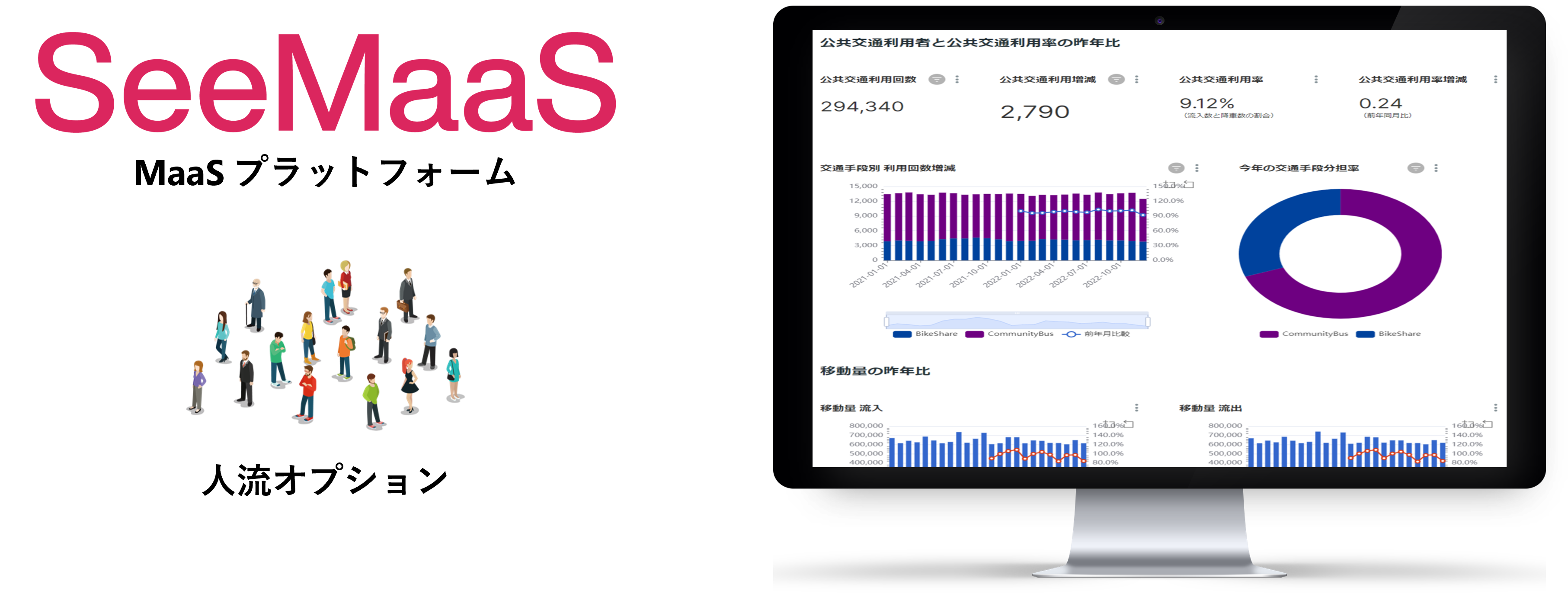 「SeeMaaS(https://www.maas.co.jp/business/seemaas/)」は、公共交通や人流データ、MaaSアプリデータなど、あらゆる移動データを統合・分析し、地域の移動実態や施策効果を精緻に可視化します。これにより、地域の特性に合わせて多様な交通サービス・施策を適切に組み合わせたMaaSの実行や、観光振興・まちづくり・環境貢献などの取り組み、施策効果のモニタリングと定量的な評価による継続的な施策改善が可能となります。移動データの利活用を通じ、交通・社会課題の解決や他業種連携による新しい価値創出の実現を支援するプロダクトです。