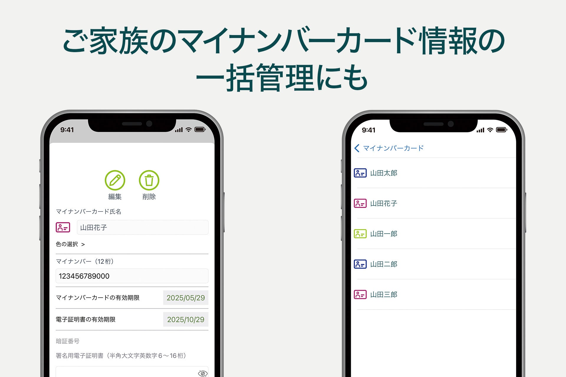 また、複数登録機能を活用することで、ご自身だけでなくご家族のマイナンバーカード情報の一括管理にも有効です。