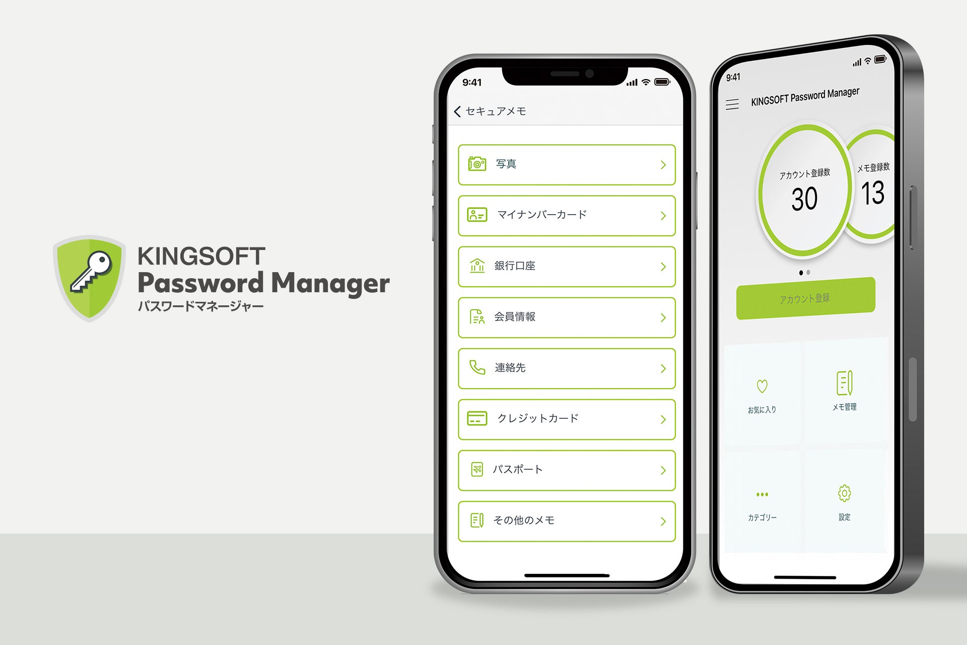 KINGSOFT Password Managerのメモ機能では、「銀行口座」「各種会員情報」「クレジットカード」「パスポート」などの情報を登録することができましたが、今回のアップデートによりマイナンバー(個人番号)やカード交付時に設定した各種パスワード(暗証番号)が個別に登録できるようになりました。