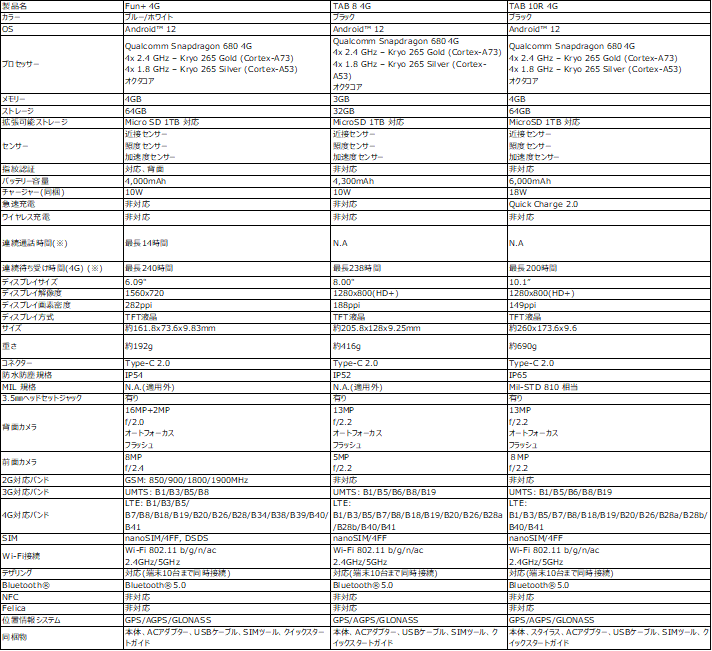 コロナ禍でリモート授業が始まったアメリカ国内で「児童・生徒がタブレットを粗雑に扱って壊れた」との声が寄せられ、開発されたタブレットです。Mil-810-STD相当の堅牢性と、防水防塵性能IP65であり、スタイラスペンを付属しています。また、別売りのキックスタンドを用意しております。教育用のみならず、野外、店舗、車内、ビジネスでの使用にもおすすめのモデルです。日本に加え台湾、韓国、オーストラリア、インド、ヨーロッパ、南米など海外のネットワークに対応しており、現地のSIMを挿入しての使用が可能です。
