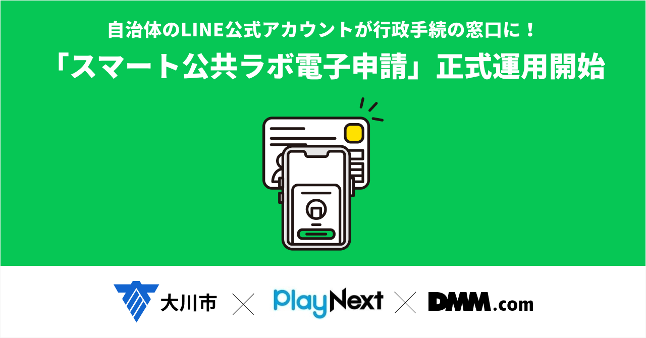 「スマート公共ラボ電子申請」とは、プレイネクストラボが自治体向けサービス「スマート公共ラボ」の一環として開発を進めているサービスで、従来は役所へ行く必要のあった手続がLINE公式アカウント内の操作だけで完結するサービスです。本サービスの導入により、市民の利便性向上および自治体職員の業務効率の目指してまいります。