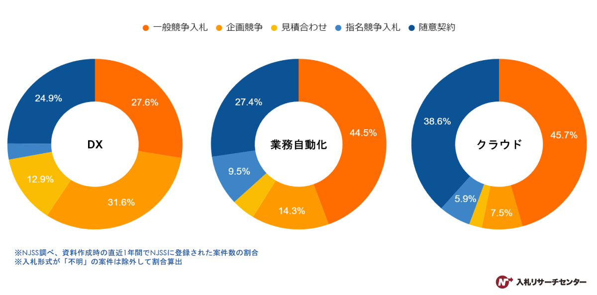 「業務自動化」「クラウド」カテゴリにおいては価格勝負の一般競争入札の案件が多く公示されています。