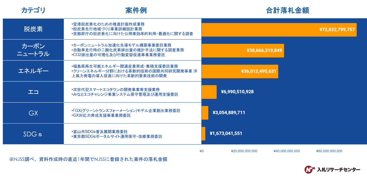 数百億円という大規模な入札案件が複数公表され、これにより「脱炭素」カテゴリの合計落札金額に大きな影響が生じました。