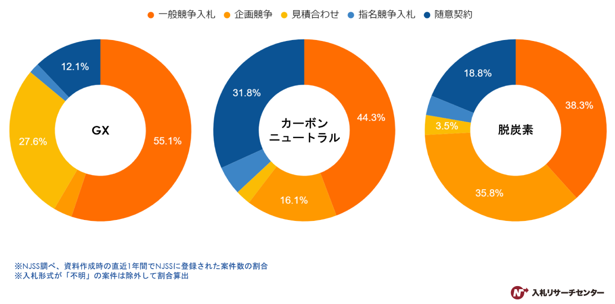 「脱炭素」「カーボンニュートラル」など、GXに関連するキーワードで多くの案件が公示されています。