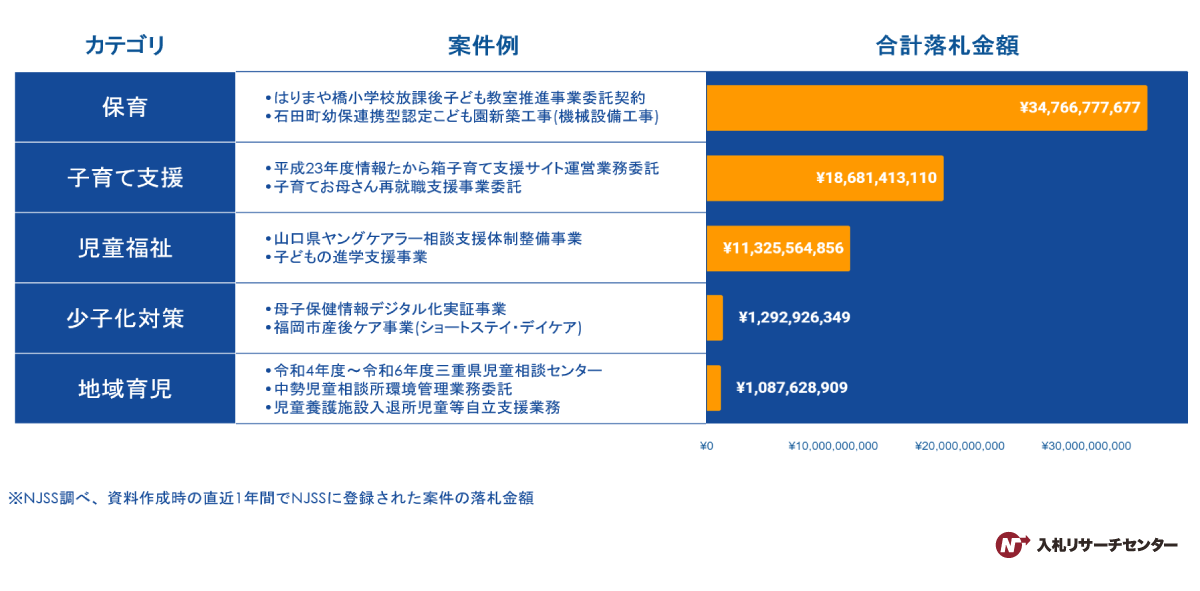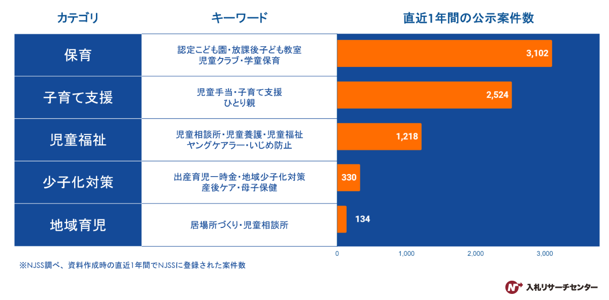 今後、ますます「子育て」関連の入札案件が増加していくことが予想され、令和5年度の注目分野となりそうです。