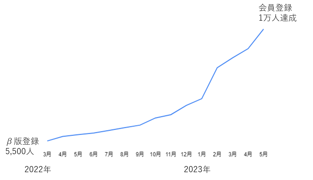 2022年3月にβ版の初期会員登録者5,500人から開始し、2023年5月で累計の会員登録者数1万人を達成いたしました。今後もより多くのお客様に利用をしていただけるよう、ユーザーニーズを汲み取りながら路線拡大や車両の増加を図って参ります。