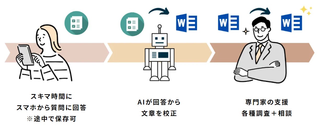 回答して頂いた内容をAIが校正し、読み手にとって分かりやすい文章に落とし込んだ後、コンサルタントが内容を確認します。