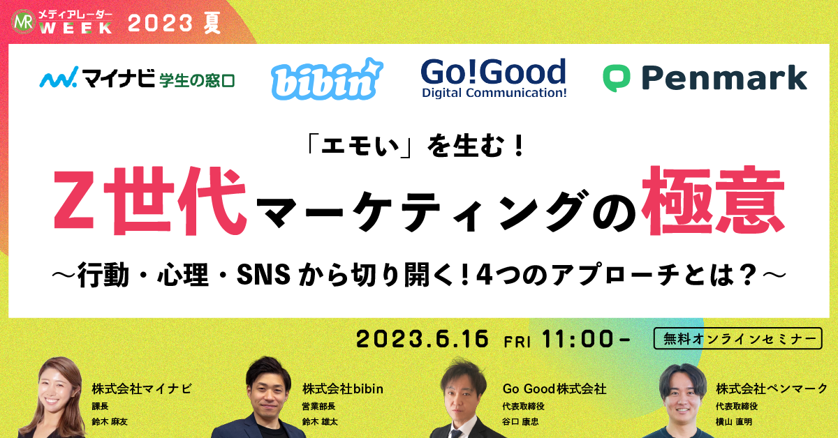 当社は「学生の一生を豊かにする」ことをミッションに掲げ、「大学生活のDX」を推進しているスタートアップ企業です。この度、メディアレーダー主催「第10回 メディアレーダーWEEK」にて『「エモい」を生む!Z世代向けマーケティングの極意」』に登壇することが決定いたしました。当社は、「大学生23万人の学生生活の実態調査」や「起業 / スタートアップ就職の意識調査」等を実施し、新型コロナウイルスの影響による、Z世代の学生生活の変化について大規模なアンケート及び分析を行っています。本セミナーでは、私たちが収集したこれらのデータを基に、Z世代への新たなマーケティング手法についてお話しいたします。