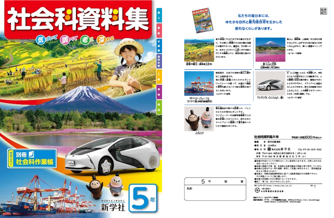 小学5年生が使用する社会科資料集の表紙にLOVOT が掲載されています。