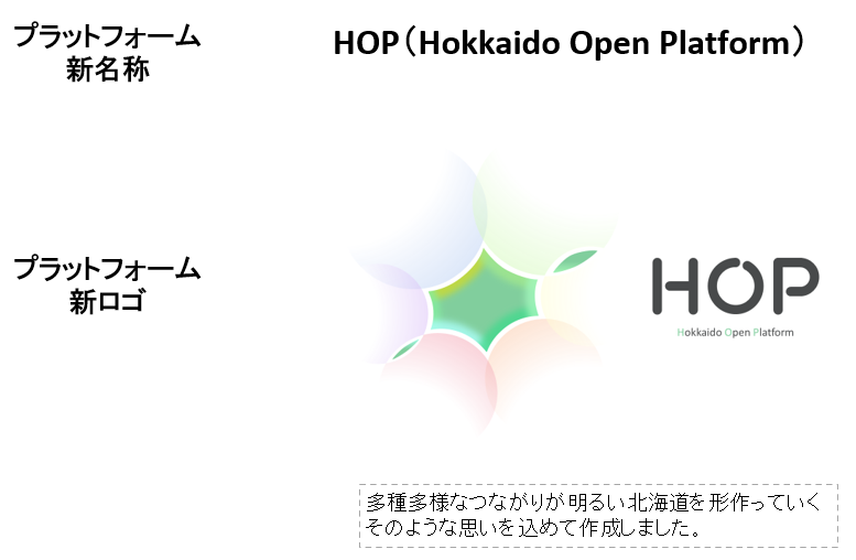 これまで様々な企業の方にご参加いただき、課題解決や企業間交流も活発化してきていますが、道内企業の皆さまにとってより一層身近で便利に感じていただけるコミュニティにすべく、この度、本日、「北海道 地域応援プラットフォーム」は、「HOP(Hokkaido Open Platform)」に名称を変更します。また、名称変更に伴い、ミッションやコミュニティロゴについても新たに設定します。