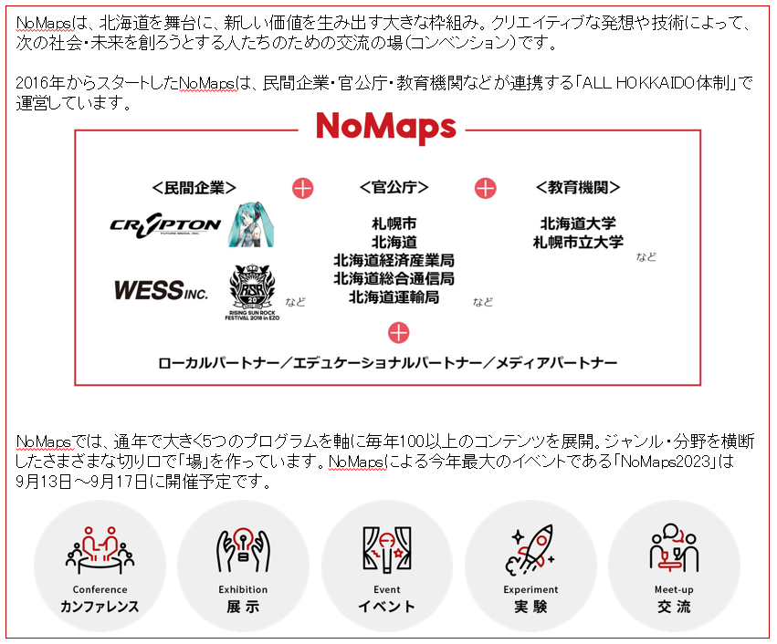 さらに今後は、創業やイノベーション創出による産業の活性化などを目的とした複合型ビジネスイベント「NoMaps」を運営している、NoMaps実行委員会との連携についても検討していきます。具体的な連携事項については、あらためてご案内いたします。