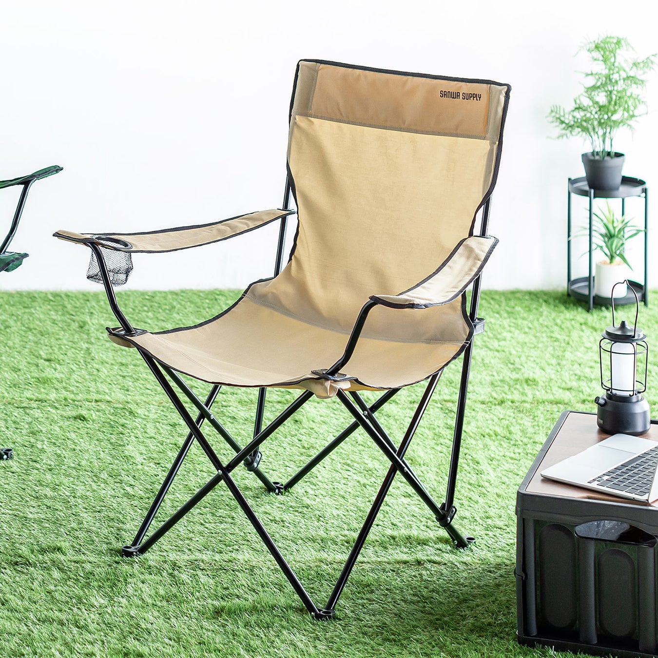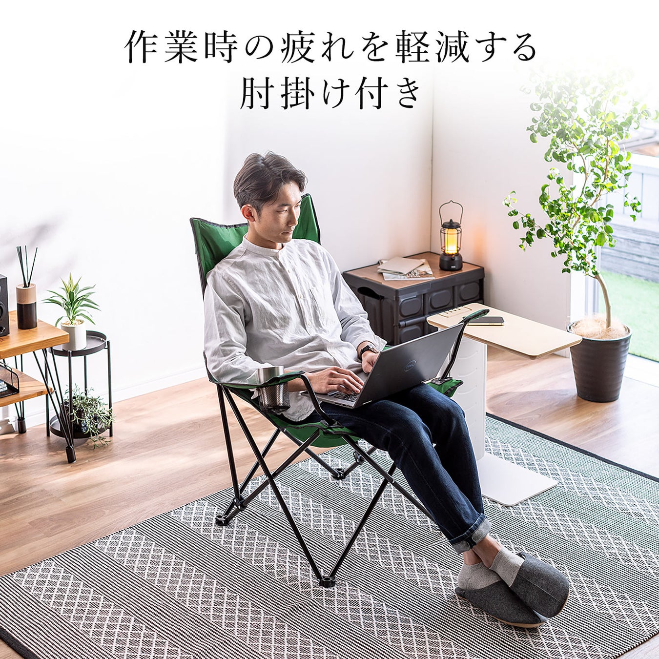 折りたたみチェア キャンピングオフィスチェア ワーケーションチェア 折りたたみ 収納袋付き アウトドアチェア コンパクト収納 カップホルダー付き ベージュ グリーン