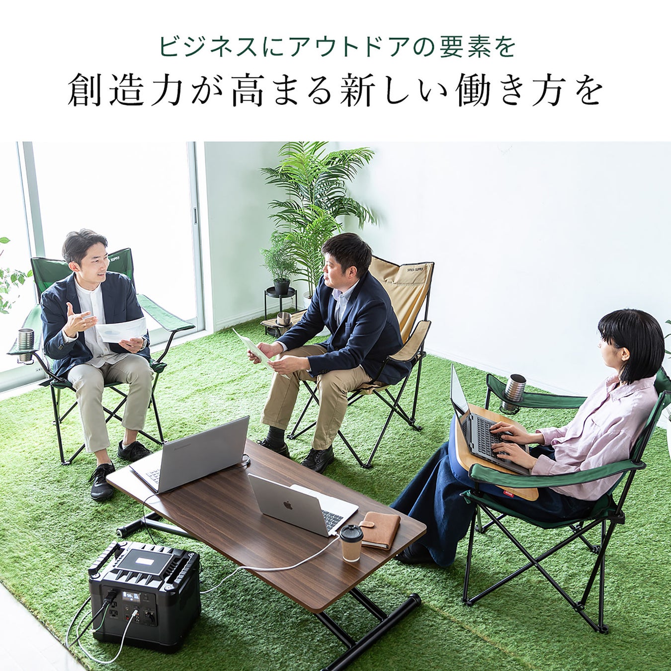 本製品は、オフィスキャンピングなどに最適な折りたたみ式アウトドアチェアです。オフィス内にアウトドアの要素を取り入れて五感を刺激し想像力を高めて仕事をすることが出来ます。手軽に持ち寄ってさっと広げてすぐにミーティングが出来るのでアイデアに煮詰まったときなどに活躍できるチェアです。