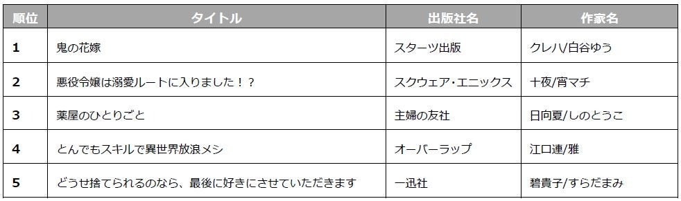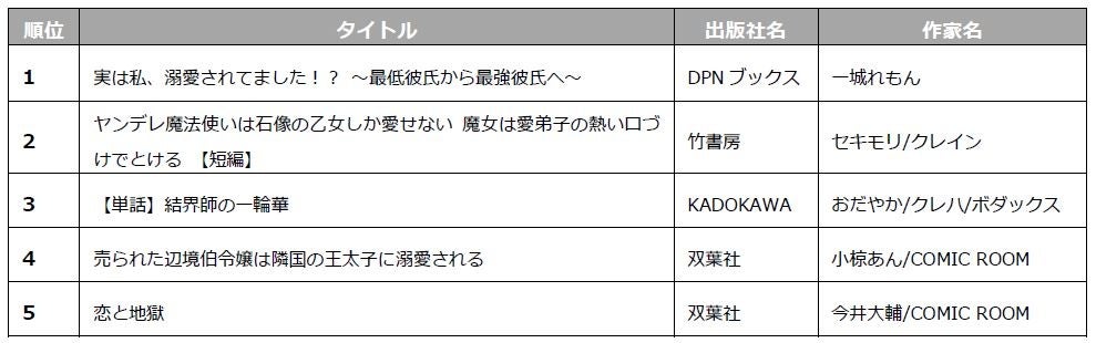 1.「コミックシーモア 2023年上半期ランキング」ジャンル別TOP5