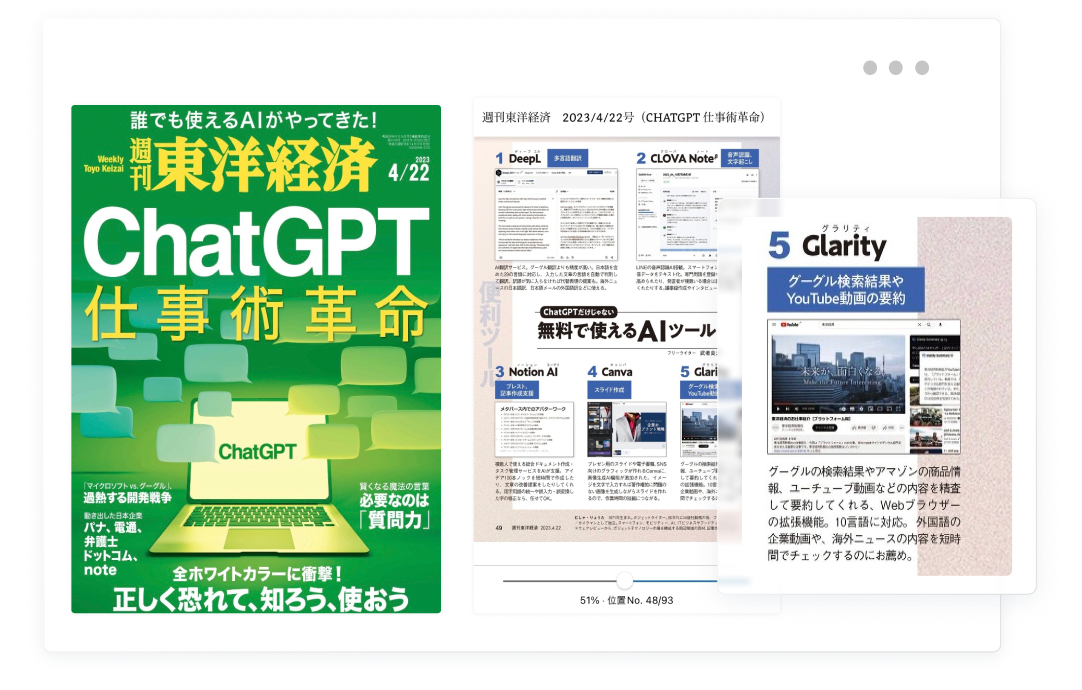 現在、Glarityのユーザー数は6万人を超え、著名な経済メディア「週刊東洋経済」もGlarityを強く推奨し、「ChatGPT仕事術革命」として絶賛しました。