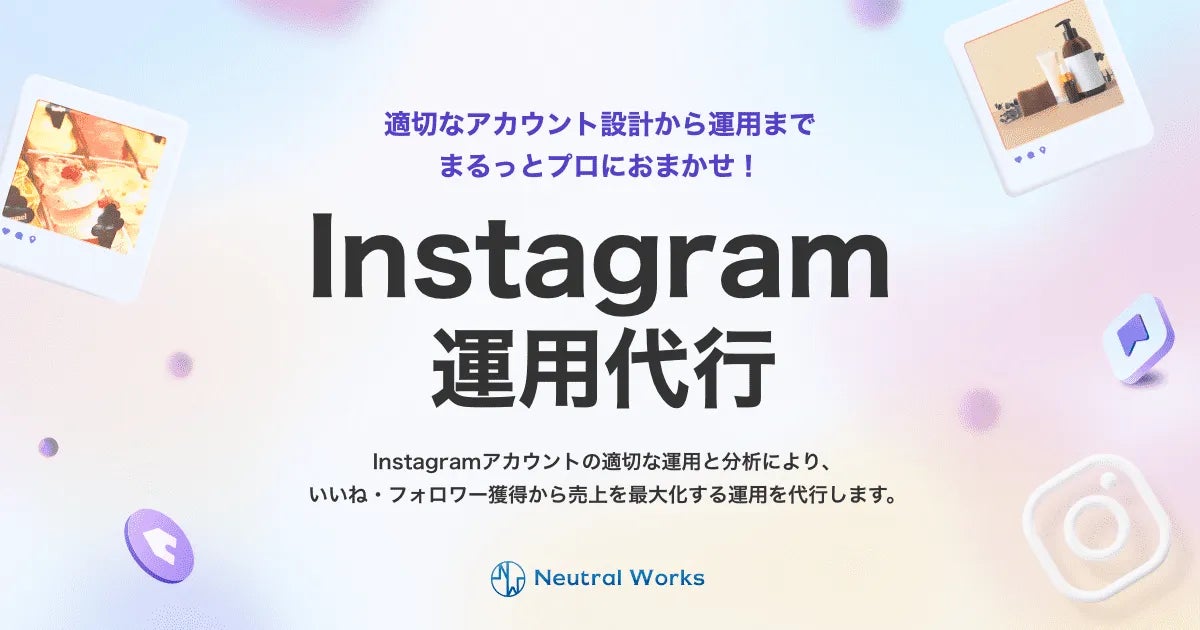 そこでニュートラルワークスは、Instagramのアカウント運用を支援する「Instagram運用代行サービス」の提供を開始いたします。支援実績10,000件以上の知見を活かし、Instagram運用による効果最大化を実現いたします。