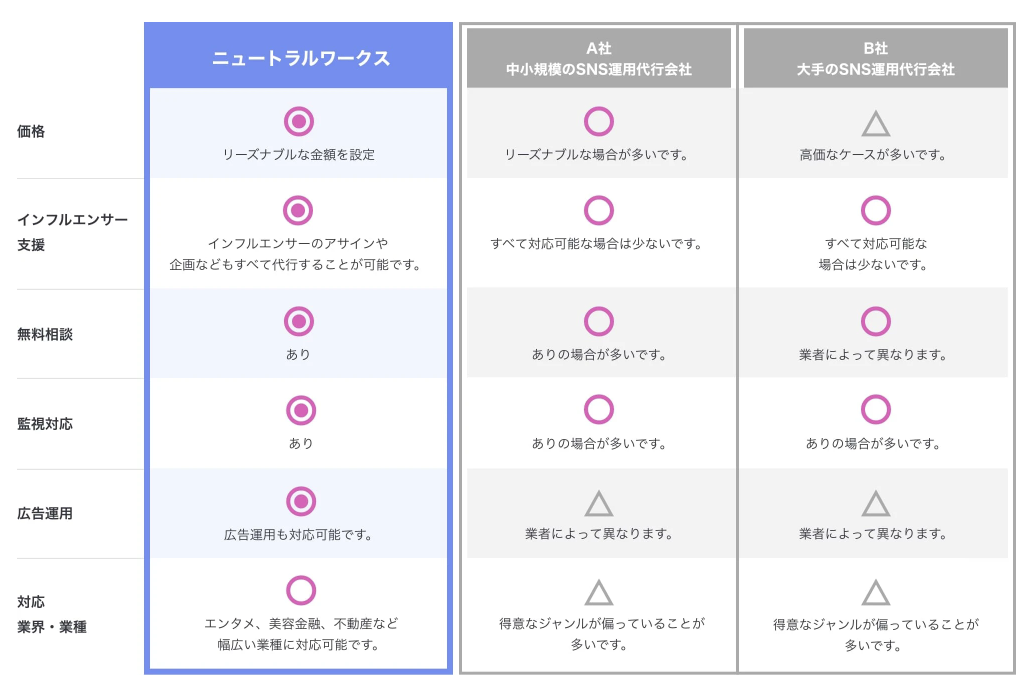 ニュートラルワークスが提供する「Instagram運用代行」の特徴