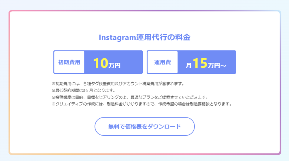 【Instagram運用代行の料金】