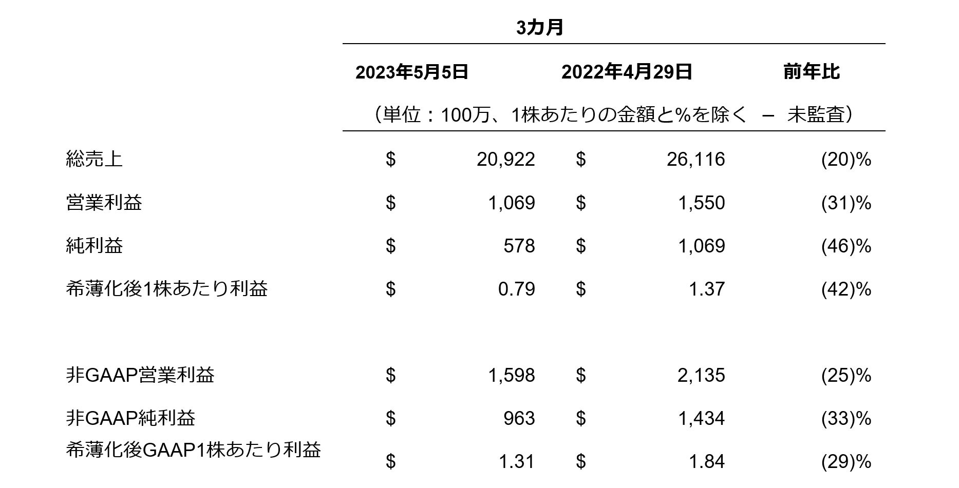 ・営業利益は11億ドル、非GAAPベース営業利益は16億ドル