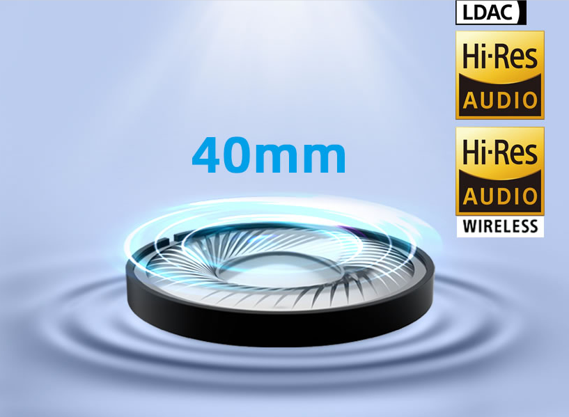 周囲の雑音やノイズを低減する「ハイブリッド式ノイズキャンセリング」技術を搭載。最大40kHzの高い周波数帯域幅を持ち、高解像度の音楽再生、より詳細で広いサウンドステージ、より感動的なサウンドを提供します。
