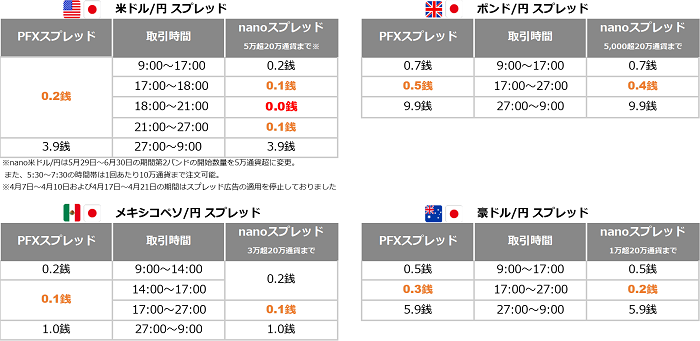 ※2023年4月7日~4月10日の期間はスプレッド広告の適用を停止しておりました