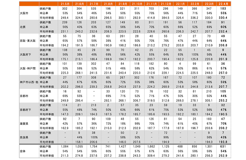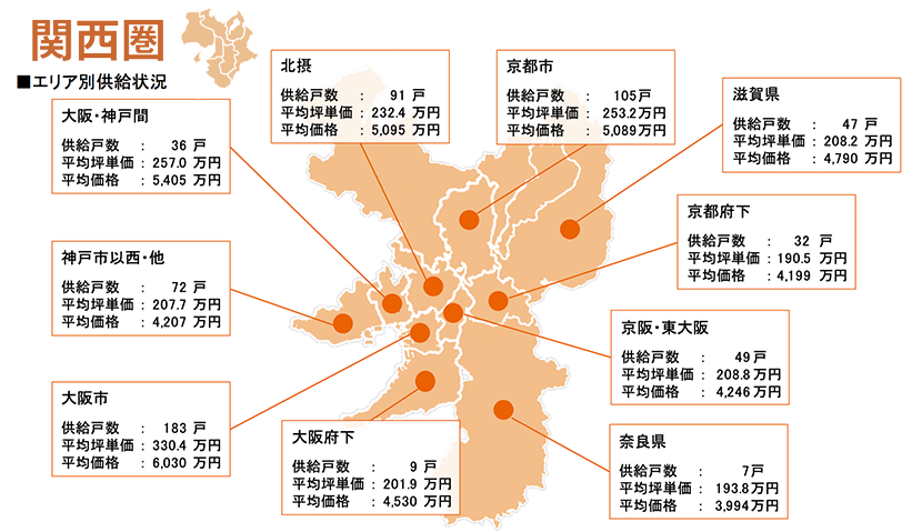 集計対象エリアは首都圏及び関西圏となっており、それぞれのエリア別相場情報、需給動向、