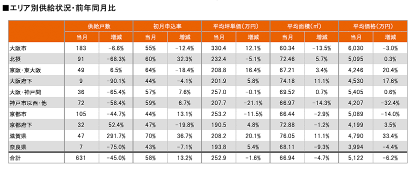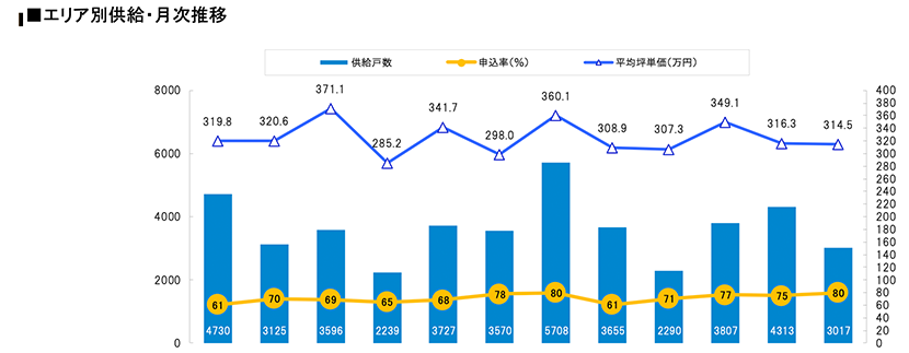 着工件数等を集計しました。また、前年同月における比較や市区別、駅別の供給ランキング等も算出しました。