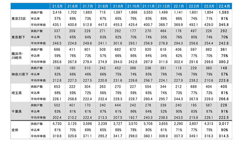 不動産ビッグデータとAI等のテクノロジーを活用し、不動産情報プラットフォームを提供する株式会社マーキュリーリアルテックイノベーター(本社:東京都新宿区 代表取締役:陣 隆浩)は、独自調査による新築分譲マンションの動向を発表致します。今月は、2022年4月度分譲実績データです。