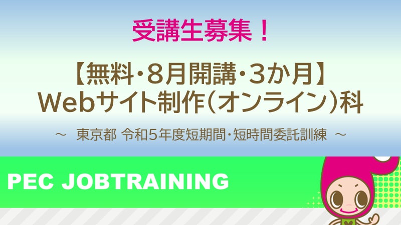 短期間・短時間委託訓練「Webサイト制作(オンライン)科」(8月開講・3か月訓練)