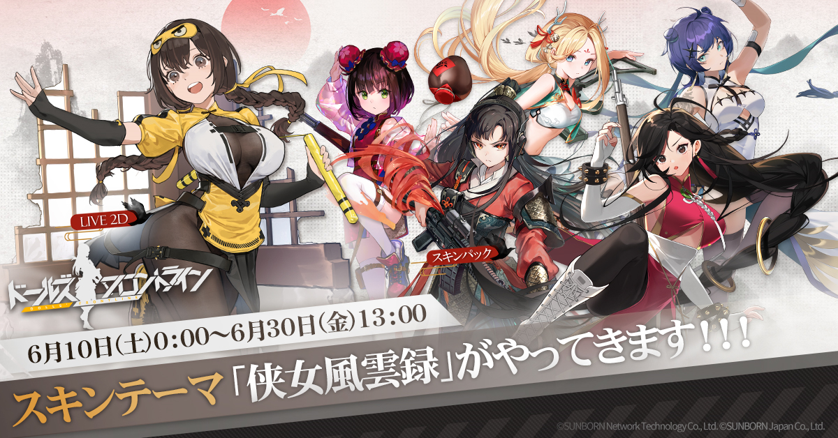 株式会社サンボーンジャパンは、スマホ向け戦略型シミュレーションゲーム『ドールズフロントライン(以下、「ドルフロ」)』において、6月10日(土)0時より追加される武術がテーマのスキン「侠女風雲録(きょうじょふううんろく)」の一部を先行して公開いたします。